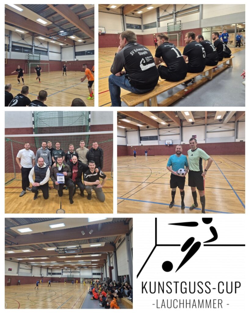 Gestern, am 03.01.2026 waren wir in der Wehlenteichhalle in Lauchhammer zu Gast. Anlass war der 3. Kunstgusscup. Neben unserer Spielgemeinschaft traten der SV Blau-Weiß Sedlitz (2. Kreisklasse), der SV Germania Peickwitz (Landesklasse), der Bischofswerdaer FV 08 (A-Jug., Sachsenliga), der SC Borea Dresden (A-Jug., Regionalliga), sowie die 1. und 2. Mannschaft des FC Lauchhammer (Landesliga, Kreisliga) an. Gespielt wurde je 10 Minuten. Die Spielform war jeder gegen jeden. Die Unparteiischen waren Nico Birnbaum, Andreas Giebitz und Uwe Tondera.